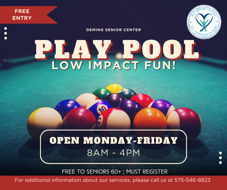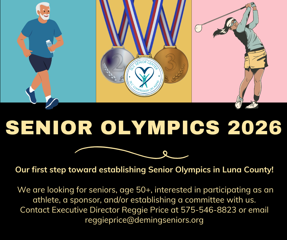 Deming Luna County Commission on Aging will participate in the 2026 Senior Olympics, with events taking place primarily in Grant County and select locations across New Mexico. The billiards 8-ball competition will be hosted locally at the DLC Senior Center on March 13. The Senior Olympics celebrate active aging, friendly competition, and community connection, offering seniors the opportunity to stay engaged and involved. The Commission on Aging is currently seeking sponsors and planning committee members to support this event and help ensure its success. Community members interested in participating, volunteering, or sponsoring are encouraged to contact the Deming Senior Center for more information.